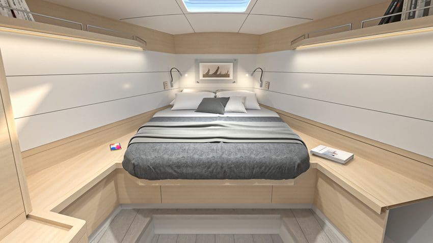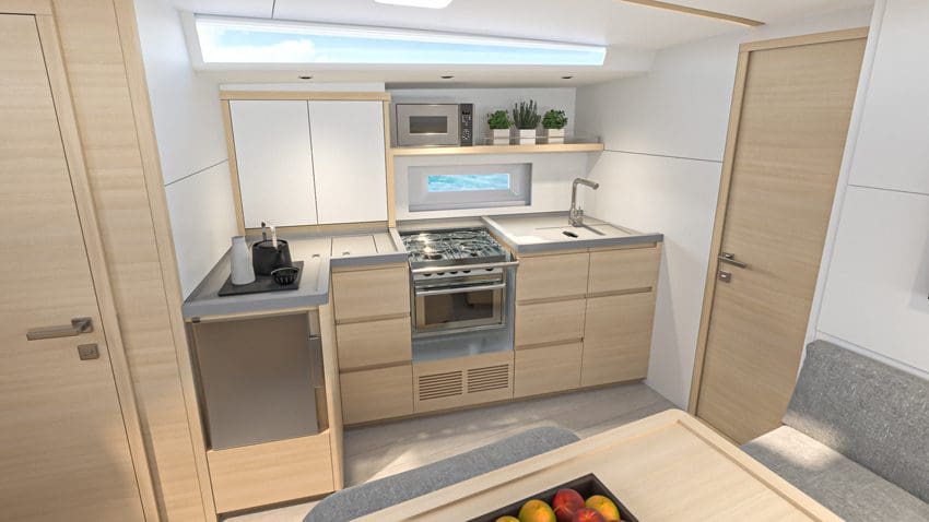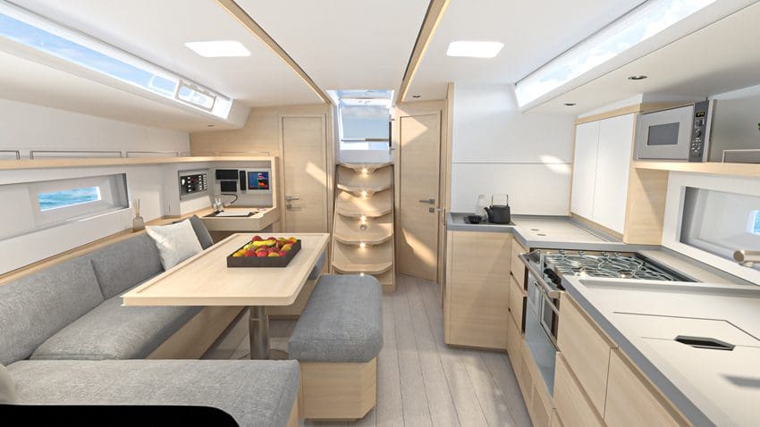 “We have found the right proportions to have a large and functional deck for both racing and cruising” – explains Massimo Gino of Nauta Design – “where all the lines and deck gear have been studied with the naval architect Matteo Polli and Cantiere del Pardo to find ergonomic positions and solutions, practical and functional for both uses. In light and sleek hull, we were able to include all the necessary functions on a 40 foot boat that also offers comfort and functionality in the interior. From the cabin to the owner’s heads, from the galley to the dinette, the volumes, stowage, and all functions are precise and well balanced. The rich and classic style is the one that has been well tested and appreciated aboard all Grand Soleil’s”.